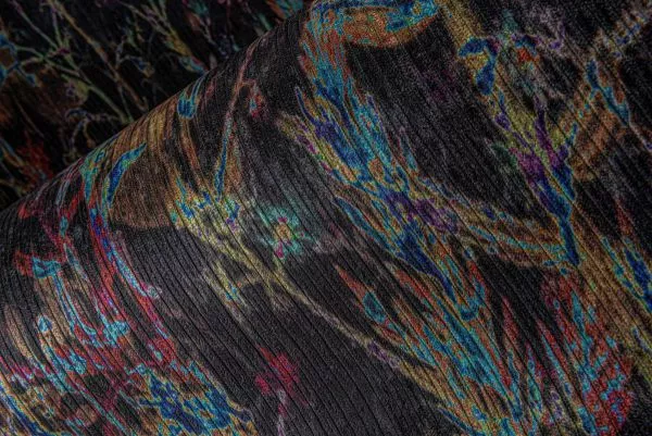 Description: A combination of colours, soft ribbed velvet and a frivolous design