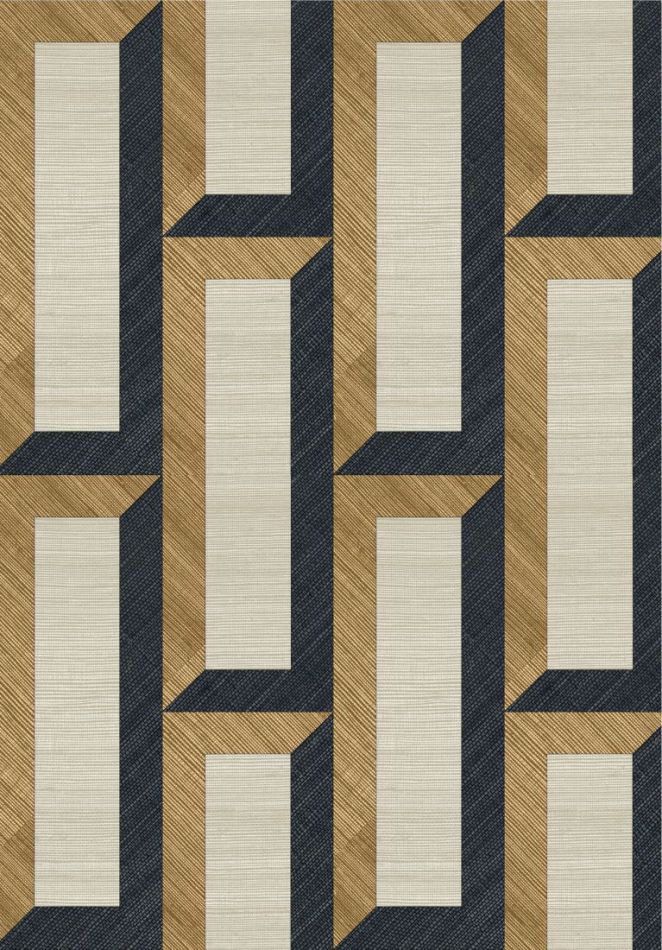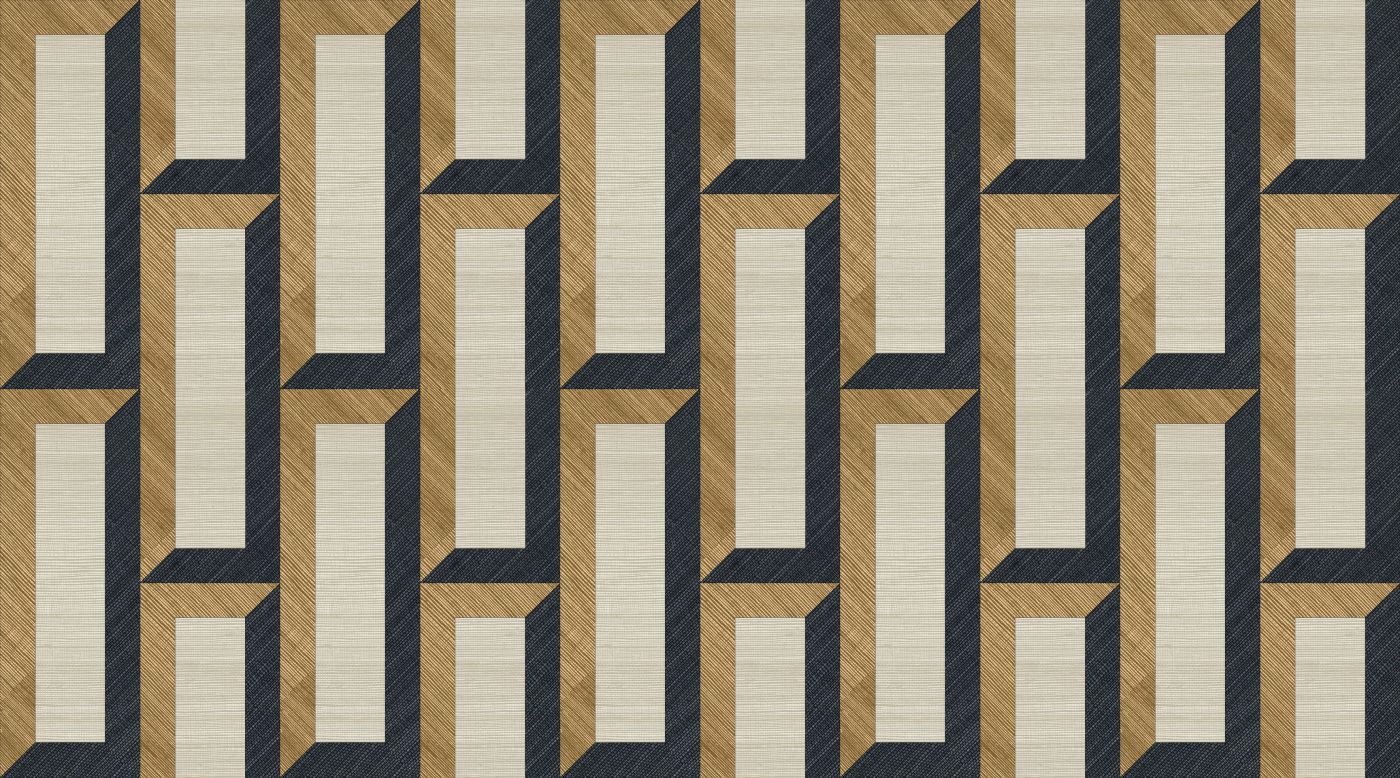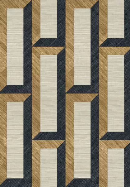 The natural product sisal, a hardwearing fibre from the agave plant, forms the basis of the Marqueterie collection. The natural woven pieces are cut and arranged by hand in different patterns. The traditional marquetery or inlay reveals striking geometric figures. Both the different direction of the weave and the colours create an unusual depth and texture to this 100% hand-made wallcovering. Depending on the incidence of light and the viewing position, a subtle sheen will become apparent.