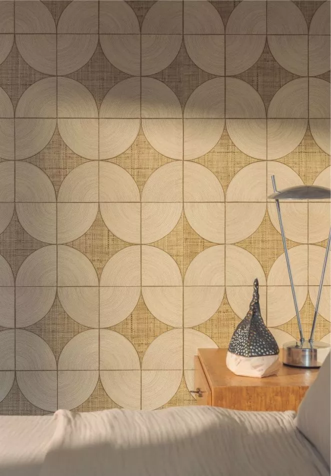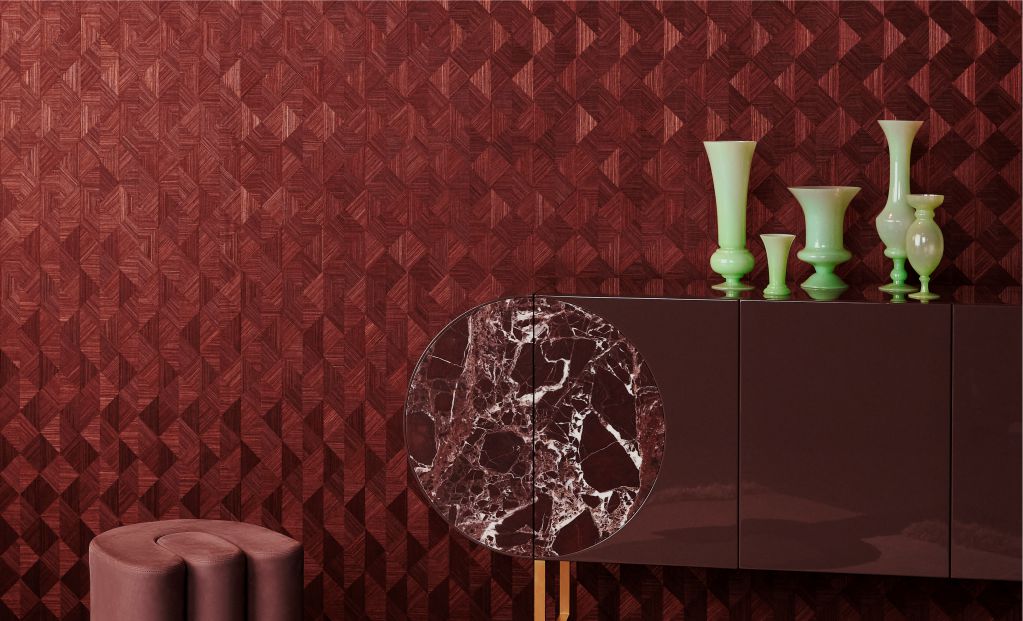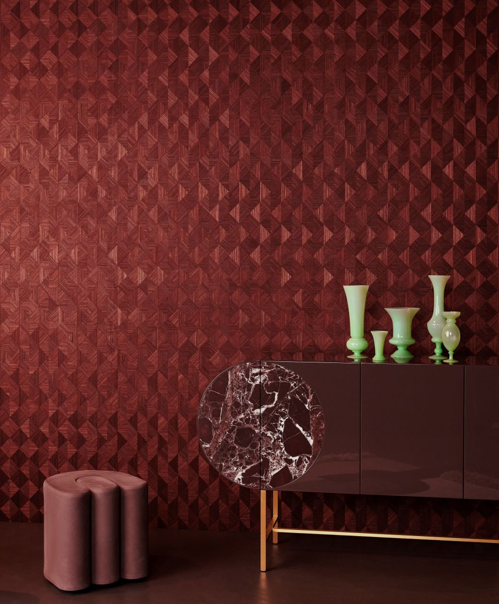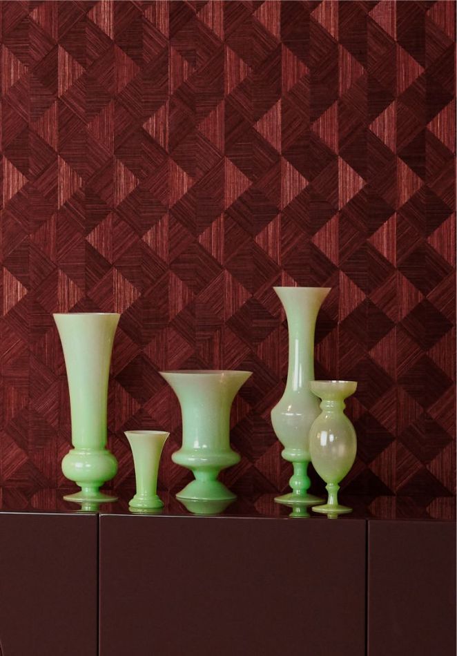 The natural product sisal, a hardwearing fibre from the agave plant, forms the basis of the Marqueterie collection. The natural woven pieces are cut and arranged by hand in different patterns. The traditional marquetery or inlay reveals striking geometric figures. Both the different direction of the weave and the colours create an unusual depth and texture to this 100% hand-made wallcovering. Depending on the incidence of light and the viewing position, a subtle sheen will become apparent.