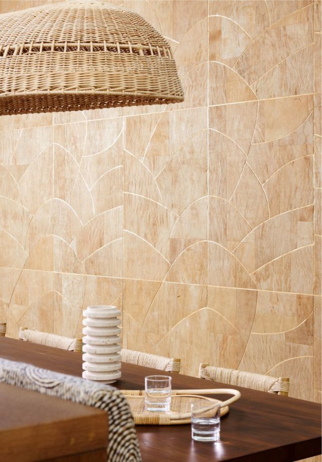This collection of wallcoverings draws on the diverse nature of Melaky, a region on the island of Madagascar with dry savannah and grasslands as well as dense mangroves. The mulberry tree and raffia, the two materials that inspired this collection, both grow in Madagascar.The bark of the mulberry tree and the fibres of the raffia palm are processed using artisanal techniques to create unique designs. These hand-crafted wallcoverings, whose textures and colours evoke the landscape of Melaky, have an unexpectedly organic look and feel. The warm, natural hues and textures combine beautifully, creating a sense of simplicity and depth. It is a timeless collection that is uniquely suited to both modern and traditional interiors.