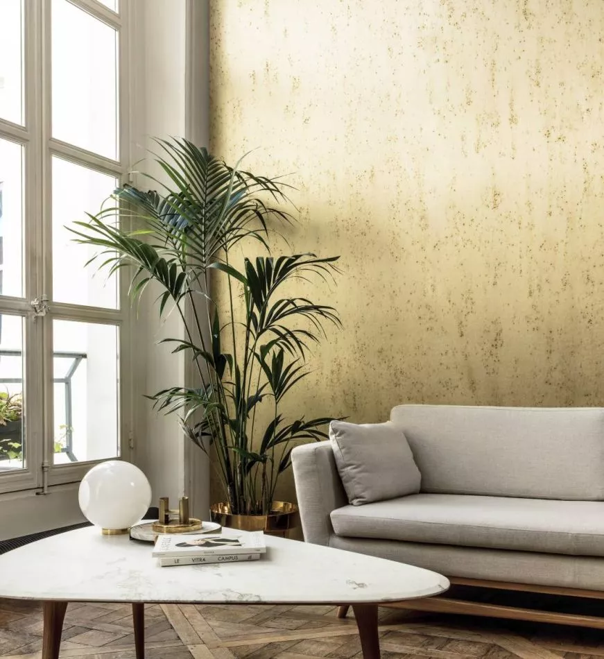This wallcovering is made of real metal foil. During production, the metal foil goes through an intensive process that was developed especially for this collection. It is being coloured in such a way that it gives the wallcovering the nuances of an authentic metal look.
