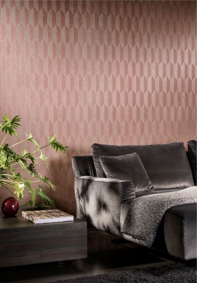 Description: Vinyl wallpaper with a deep and natural-looking relief in sleek geometric shapes that create a 3D effect