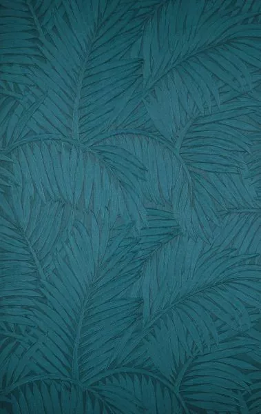 Description: A print of palm leaves that depicts the tropics