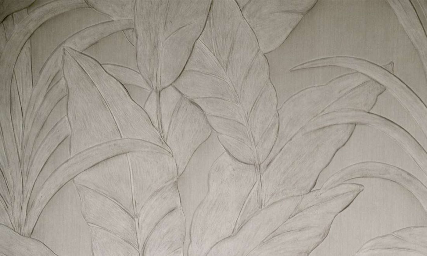 Vinyl wallcovering on paper backing with a botanical inspiration.