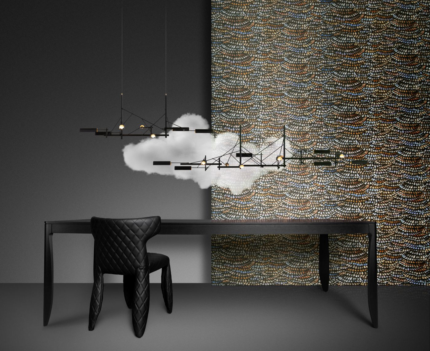 The Dandelion Cranes Wallcovering is made from pleated textile, inspired by the Cranes’ unique colouring and fanlike wings. The tactile design comprises overlapping textile pleats placed in a pattern that resembles feathered fans.