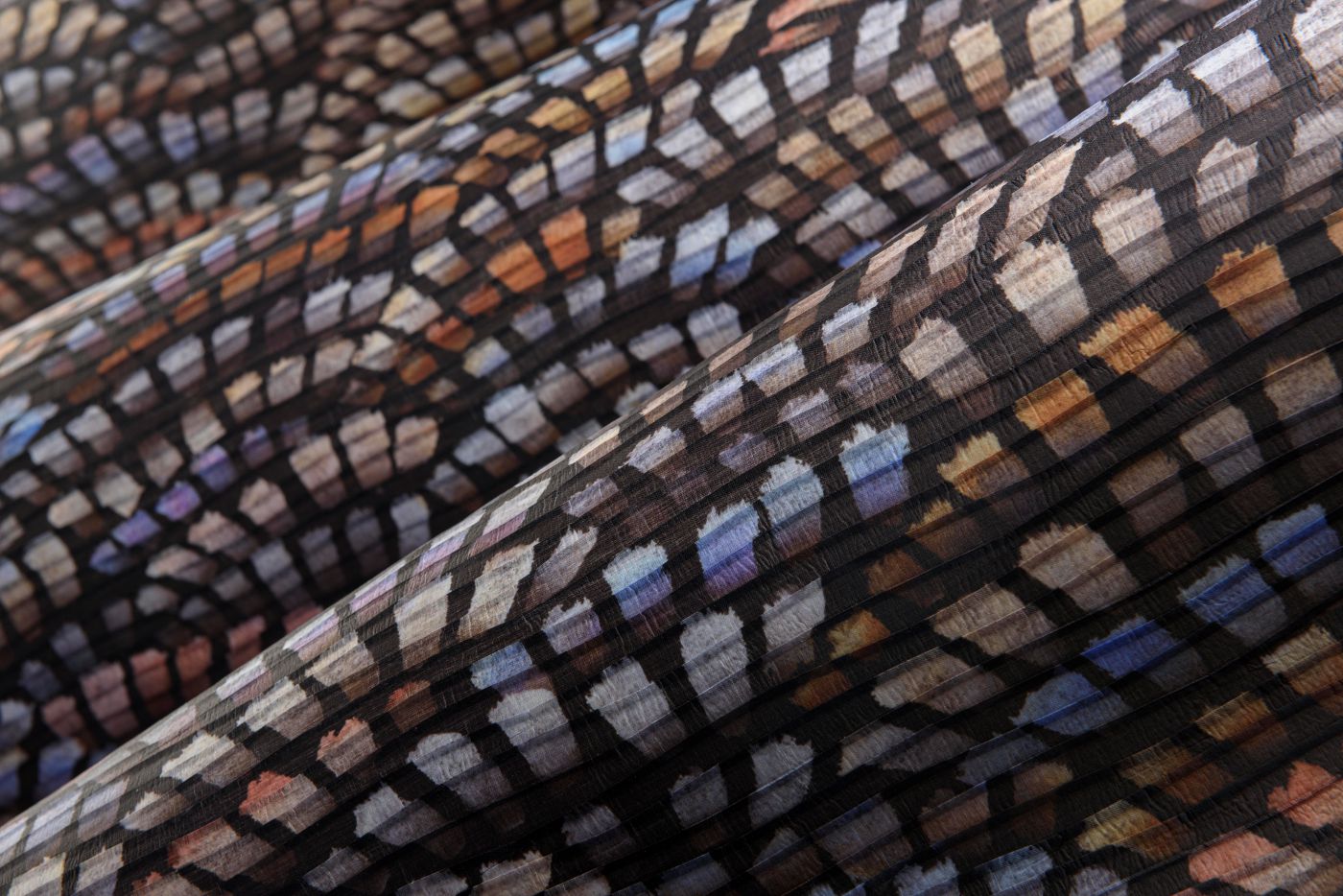 Description: Pleated textile wallcovering, inspired by the Dandelion Cranes’ unique colouring and fanlike wings
