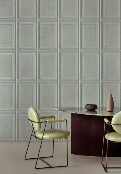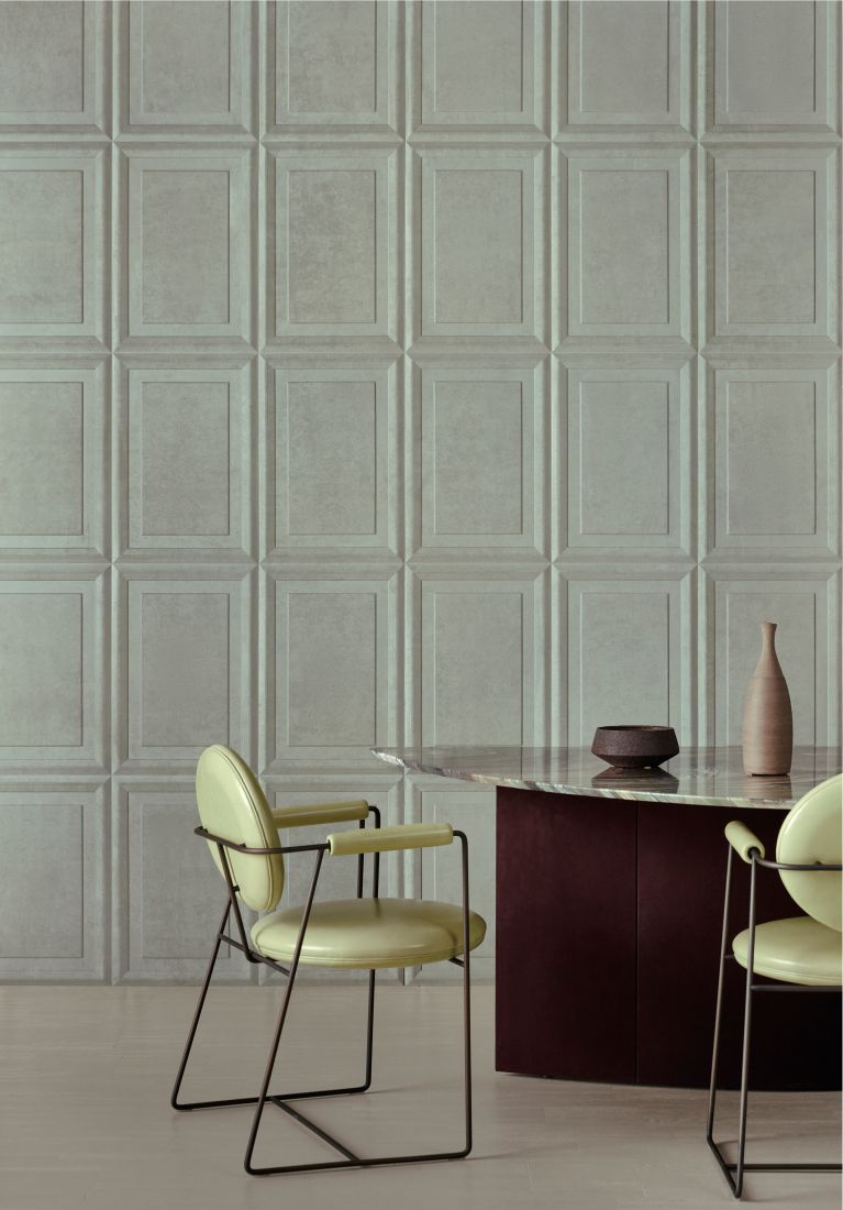 This design is inspired by classic coffered ceilings as used by the Romans to lighten the vaulted structures of domes and ceilings. In addition to colour and texture, Cassetta also adds relief to the wall. It is finished in a soft suede look for an extra tactile result. This 3D wallcovering also has a positive impact on the acoustics in a room.