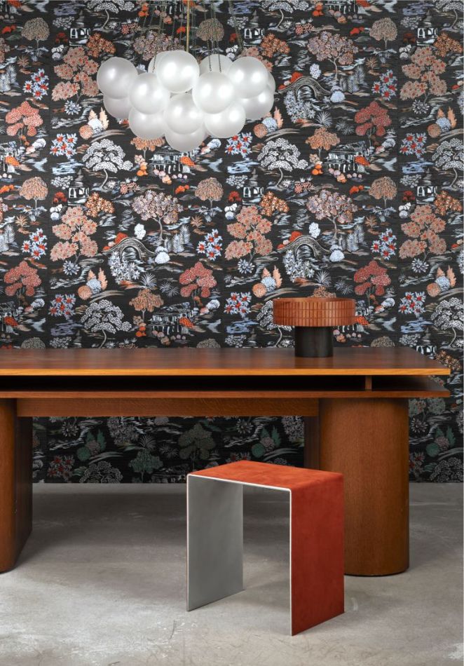 This colourful Japanese garden has been carefully embroidered with great attention to detail onto this base of sisal fibres, with the different shades of the threads revealing its natural character. The fairy-tale scene appeals to the imagination.