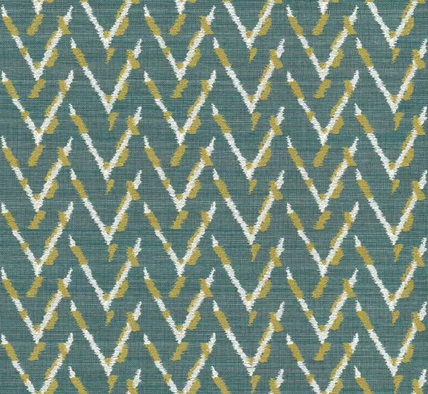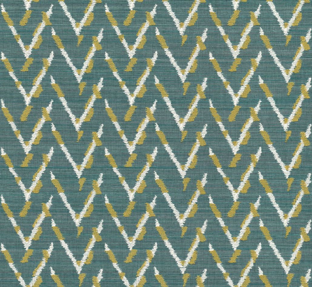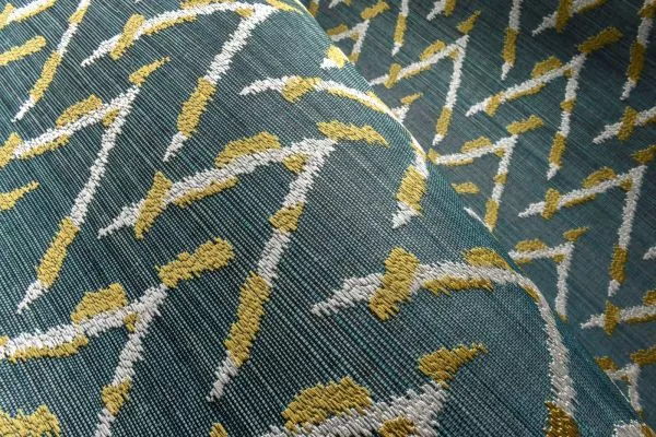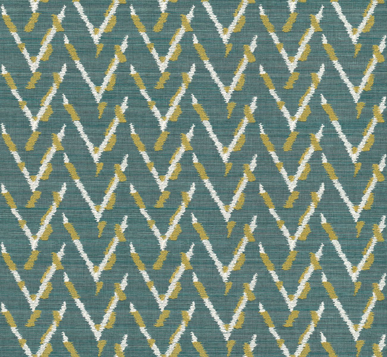 Description: Abstract herringbone pattern embroidered onto a sisal background using shiny textile threads