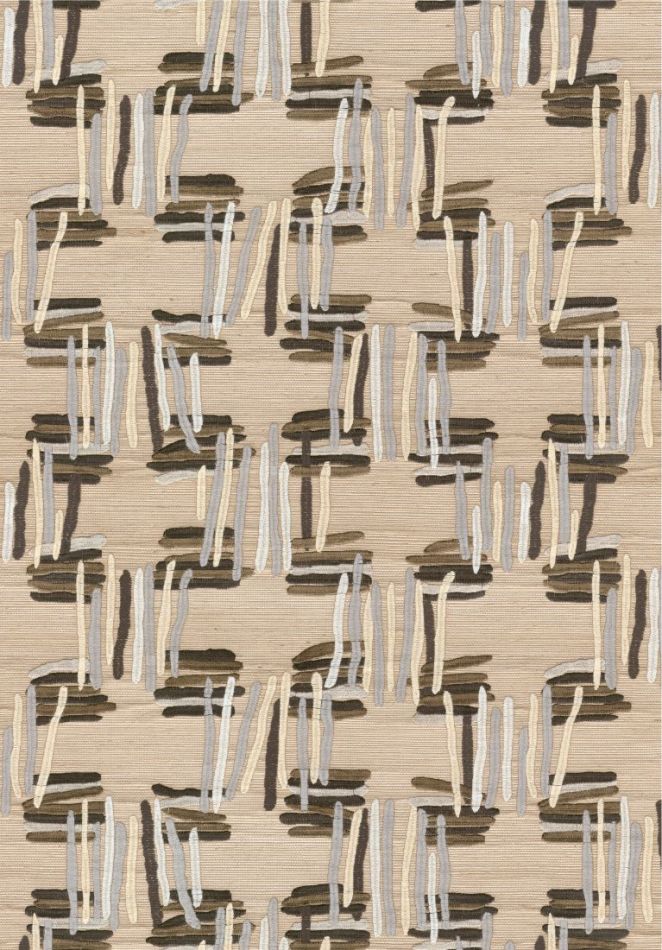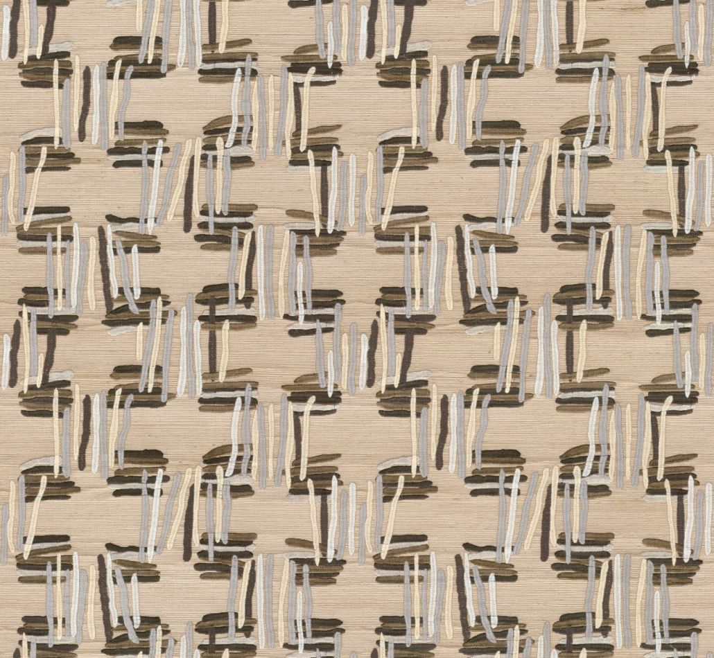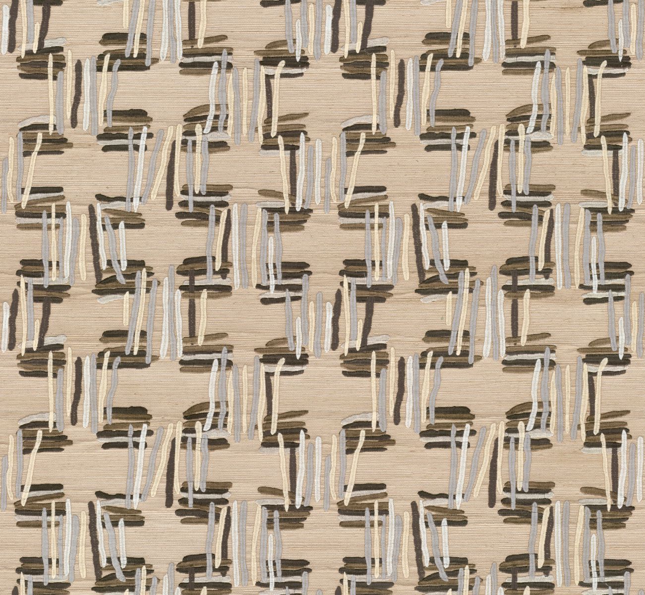 Tatami means folded and stacked in Japanese, referring to the way in which traditional Japanese floor mats are manufactured. The substrate of this design is a playful reference to this authentic technique. The shiny geometric embroidery perfectly comes into its own against this background.