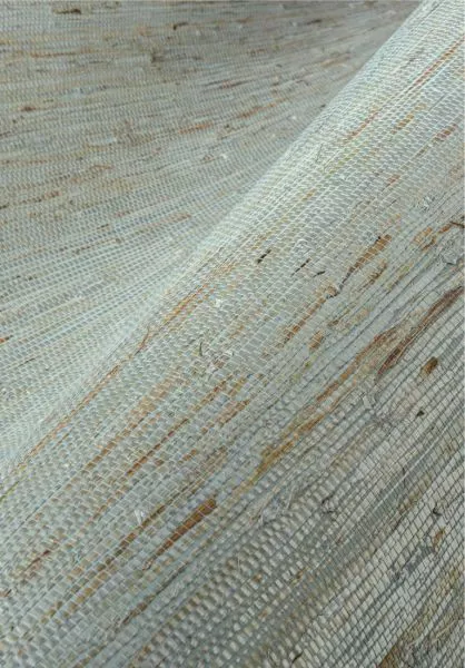 The fibres of the climbing plant kudzu, which is very common in tropical regions, are coarsely woven into a unique wallcovering. The irregular thicknesses and different shades of the various threads reveal its natural origins.