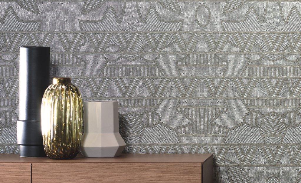The same ‘quillwork’ as Civilia, however, this time with a clear pattern. Made exactly in the same way as the Paleo Indians did it, with stylised figures carved in wood, stone or bone. Excavations have taught us that they were mad about coloured materials, such as coral, turquoise and jade, shades that you will also find in this collection.