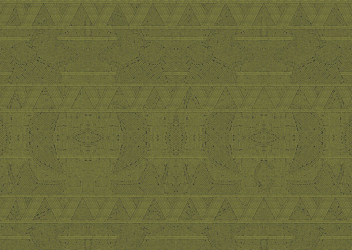 The same ‘quillwork’ as Civilia, however, this time with a clear pattern. Made exactly in the same way as the Paleo Indians did it, with stylised figures carved in wood, stone or bone. Excavations have taught us that they were mad about coloured materials, such as coral, turquoise and jade, shades that you will also find in this collection.