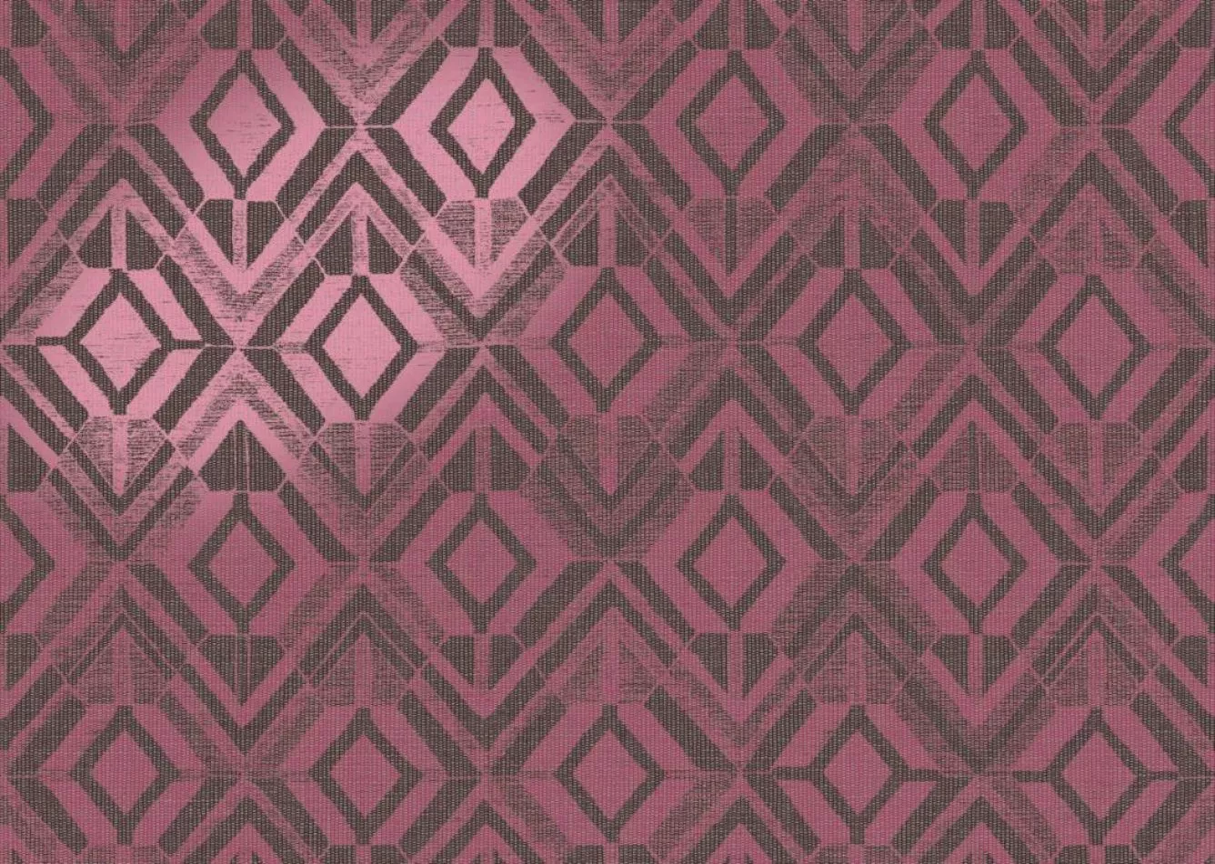 Non-woven wallcovering inspired by textures and patterns from the textile industry, combined with a patchwork of jute.