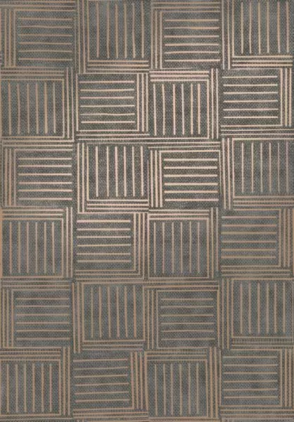 Non-woven wallcovering inspired by textures and patterns from the textile industry, combined with a patchwork of jute.