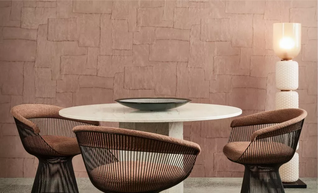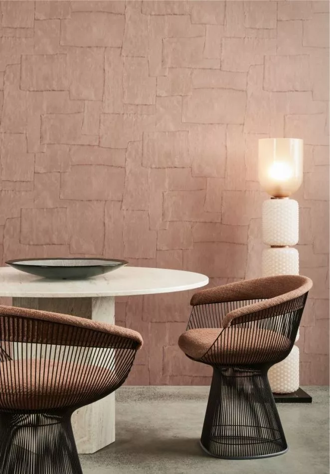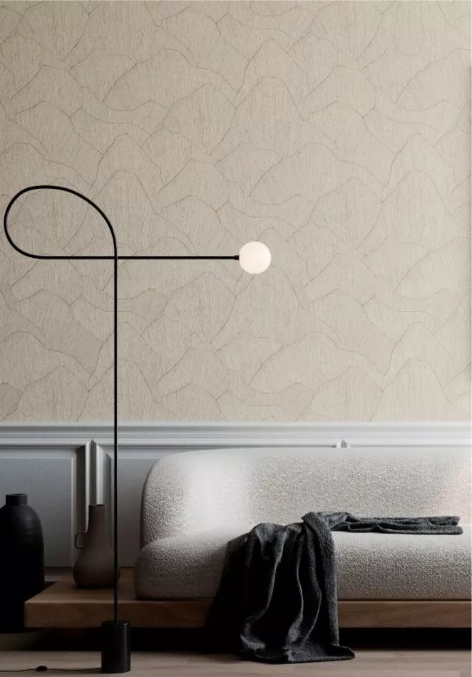 Shards features a composition of fragments. It draws its inspiration from plasterwork, which gives the pattern a traditional character. The uneven nature of the wallcovering and incidence of light create extra relief.