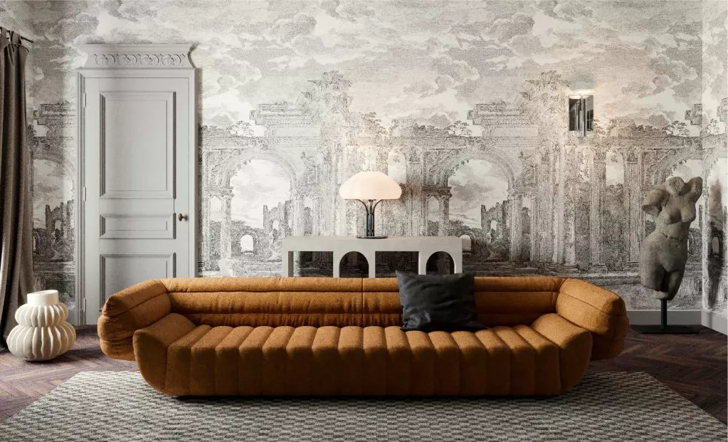 Sculptura draws its inspiration from traditional plasterwork. Strips of plaster were arranged into a pattern by hand and then transformed into a surprising vinyl collection. The typical plaster structure of mesh, cracks and uneven areas is clearly visible. This intriguing wallcovering with its surprising geometric patterns subtly lends a touch of colour, relief and structure to the wall. The shadow play of light and dark brings smooth walls to life. In short, Sculptura lends a subtle decorative touch to your interior without demanding all your attention.