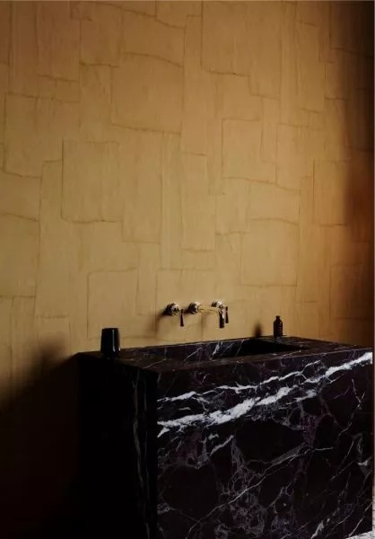 Sculptura draws its inspiration from traditional plasterwork. Strips of plaster were arranged into a pattern by hand and then transformed into a surprising vinyl collection. The typical plaster structure of mesh, cracks and uneven areas is clearly visible. This intriguing wallcovering with its surprising geometric patterns subtly lends a touch of colour, relief and structure to the wall. The shadow play of light and dark brings smooth walls to life. In short, Sculptura lends a subtle decorative touch to your interior without demanding all your attention.
