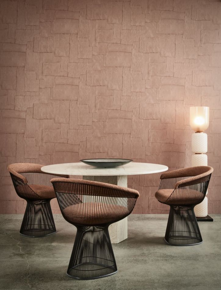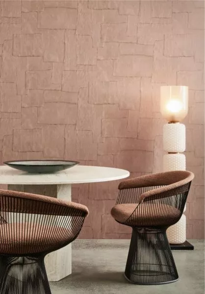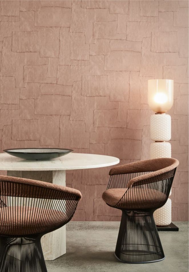 Sculptura draws its inspiration from traditional plasterwork. Strips of plaster were arranged into a pattern by hand and then transformed into a surprising vinyl collection. The typical plaster structure of mesh, cracks and uneven areas is clearly visible. This intriguing wallcovering with its surprising geometric patterns subtly lends a touch of colour, relief and structure to the wall. The shadow play of light and dark brings smooth walls to life. In short, Sculptura lends a subtle decorative touch to your interior without demanding all your attention.