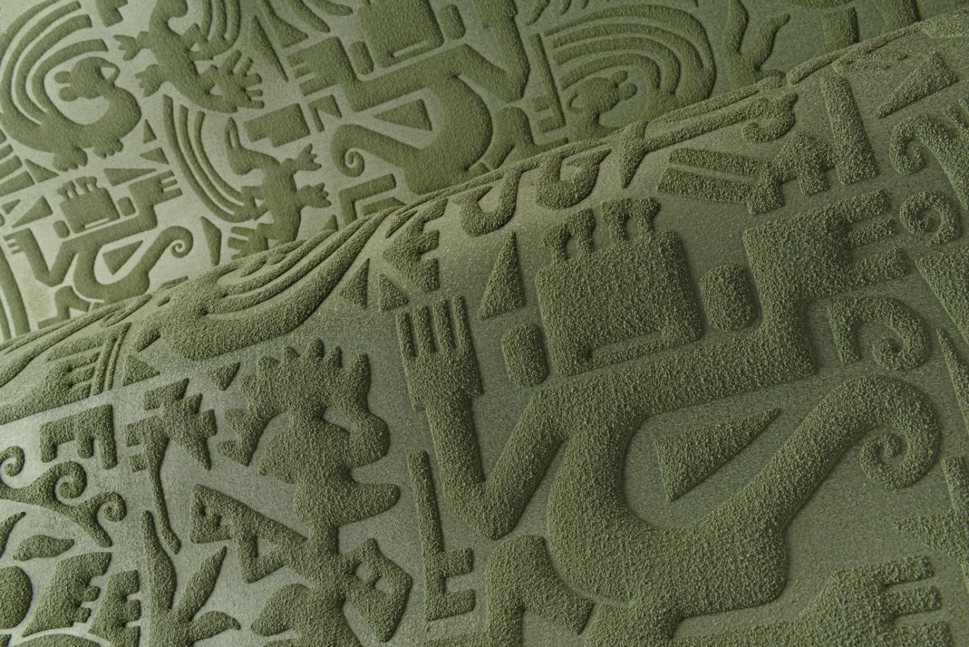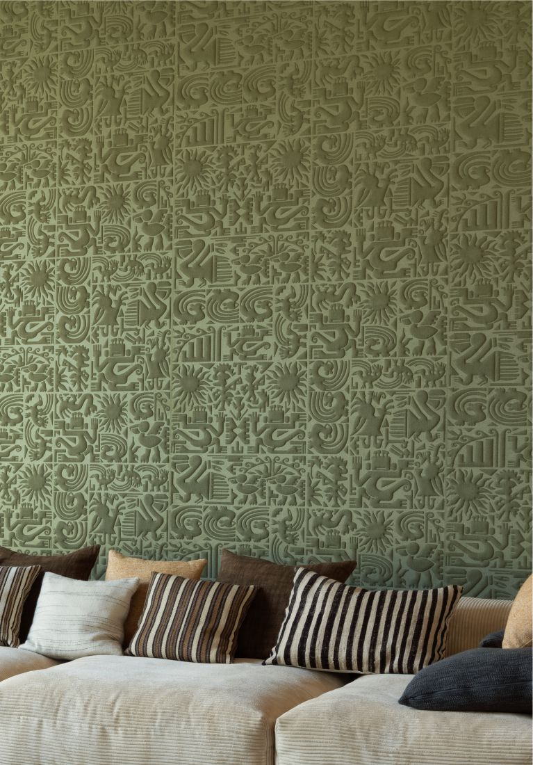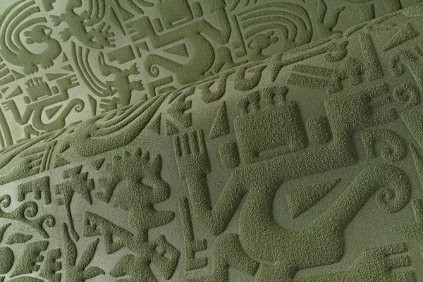 Description: 3D wallcovering inspired by ancient stone carvings