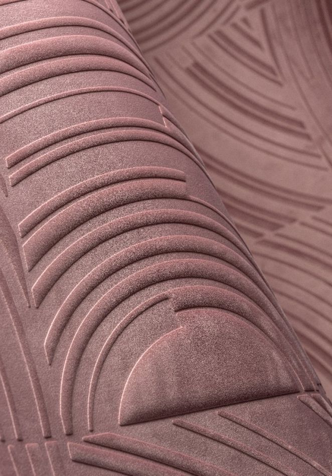 To obtain a nice and lively effect on the wall, a soft-touch velvet with clear nuances was carefully selected. Light markings, characteristic to velvet, may occur or appear in the deeper parts of the patterns, contributing to the natural charm of the product.
