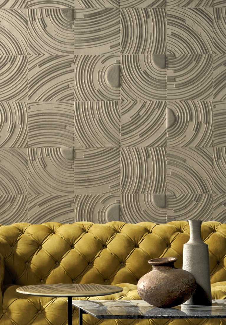 Intriguing, elegant and luxurious, Velveteen gives your interior the most exclusive touch. The soft velvet makes this wallcovering simply irresistible, while the innovative three-dimensional technology provides depth and pronounced structure to the wall.Matrix’s artistic interplay of lines, Ridge’s vertical ribs, Tetra’s patchwork, and Twirl’s intertwining fragmented circles offer you a wide range of design options.