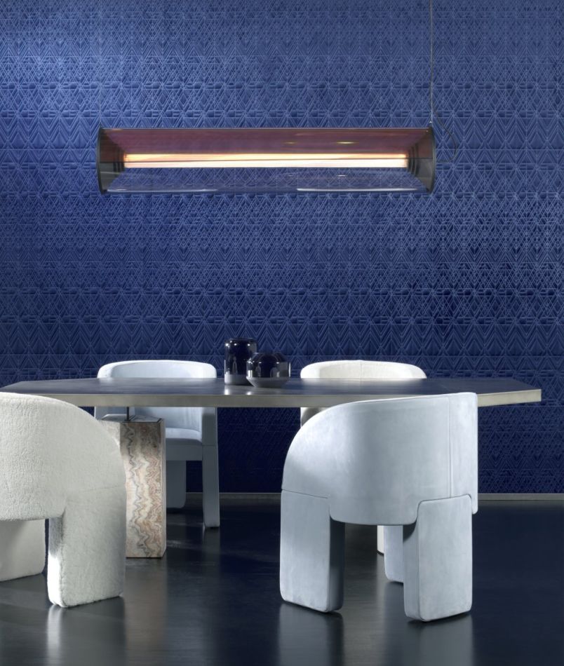 Intriguing, elegant and luxurious, Velveteen gives your interior the most exclusive touch. The soft velvet makes this wallcovering simply irresistible, while the innovative three-dimensional technology provides depth and pronounced structure to the wall.Matrix’s artistic interplay of lines, Ridge’s vertical ribs, Tetra’s patchwork, and Twirl’s intertwining fragmented circles offer you a wide range of design options.