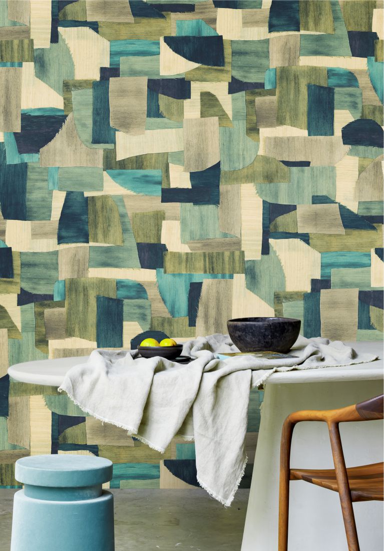 Used silk fabrics that are given a second life on the wall are the inspirational idea behind this collection. Combinations of different large surfaces of textile produce a frivolous and irregular patchwork. The different colours, with a subtle watercolour appearance, catch the eye and create an expressive interior.