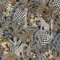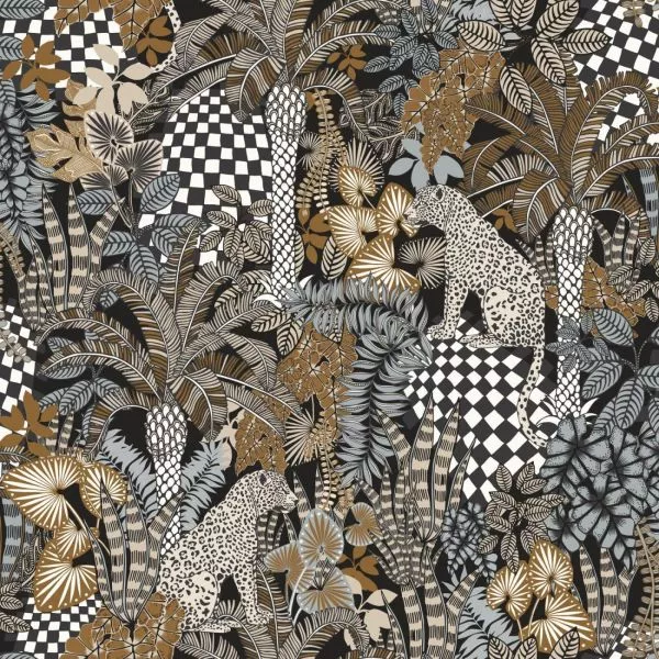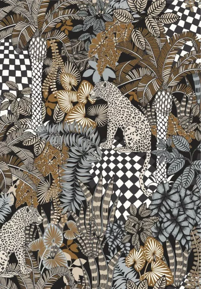 A landscape of great richness, where the abundance of details refers to the density of the Belize jungle in Central America. In a design of a real modernity, a whole tropical paradise awakens on paper. It integrates a new and surprising geometry in the form of a checkerboard into a teeming plant universe. This pattern is the subject of great finesse in the quality of printing and the mixing of colors, which are obtained by a photogravure process. A straw grain gives the entire design a matte, natural appearance and precious volumes.