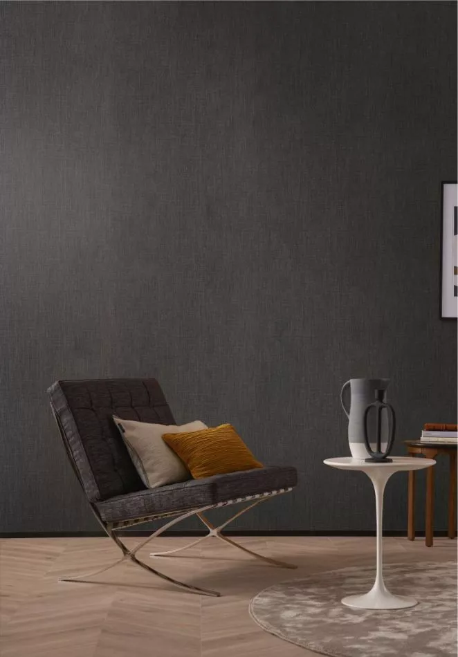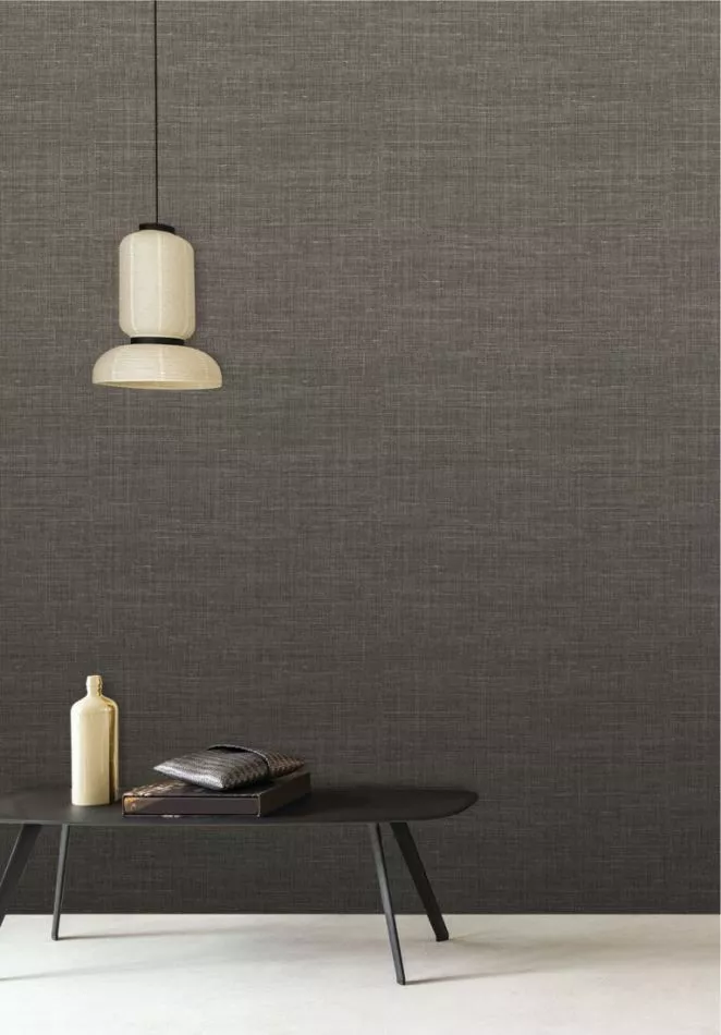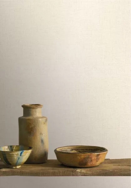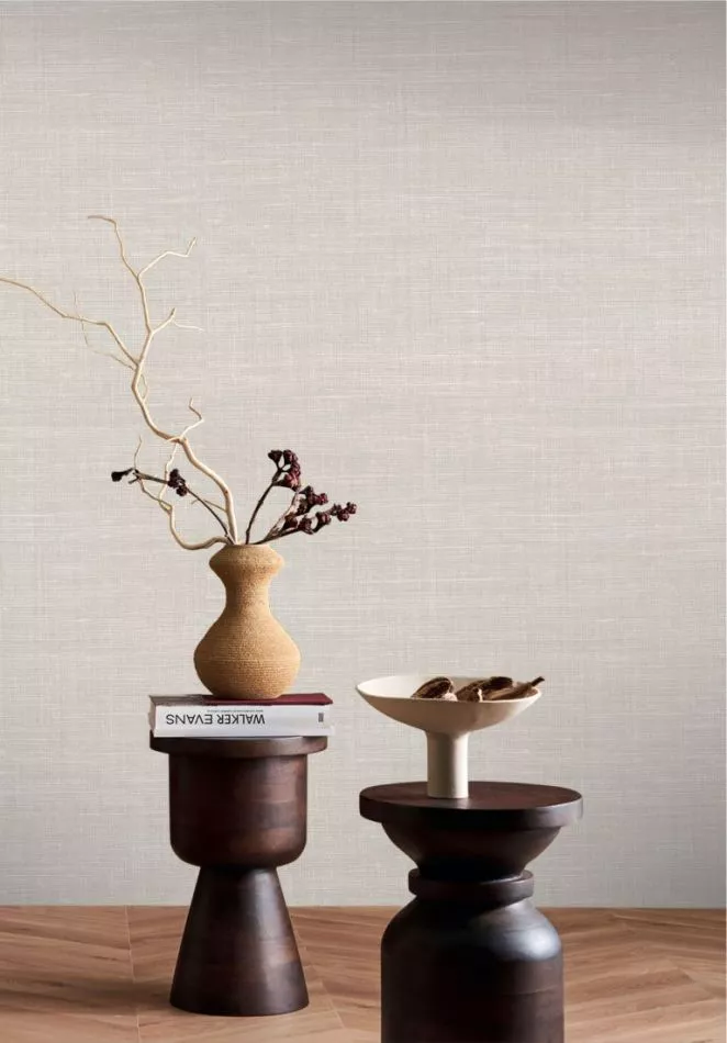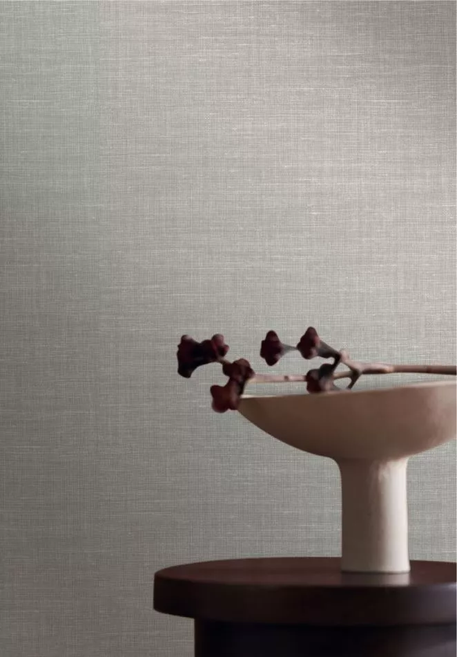 An irregular weave and subtle tonal variations give the wallpaper a textile appearance.