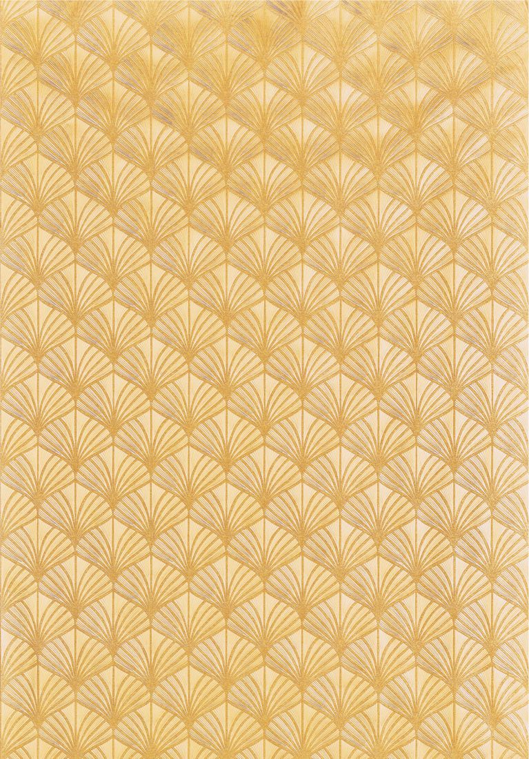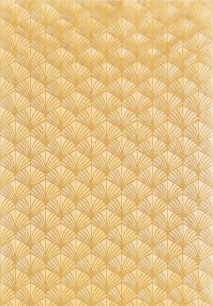 A constellation found on the celestial equator, ORION has inspired a refined design with palmettes. A golden metallic leaf is placed on a smooth vinyl base. When heated it takes on the texture. The metallic leaf and the texture come together perfectly to display the raised design and add an exquisite shine to the design.