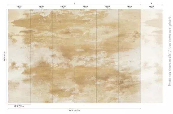 At sunrise or just before dusk, the golden hour lights up the sky. The air seems lighter, outlines blur and colours merge together. The golden hour takes its place on walls or ceilings. A moment of suspended beauty providing a moment to reflect.