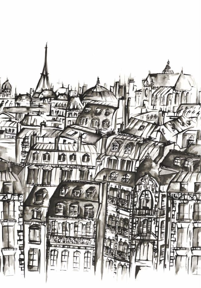 Walk along the wide Parisian boulevards, with their Haussmann-style mansions, art galleries and theatres. The spirit of Paris delights the walls. Grands Boulevards wallpanel has been entirely hand-drawn in coloured inks by one of our stylists.