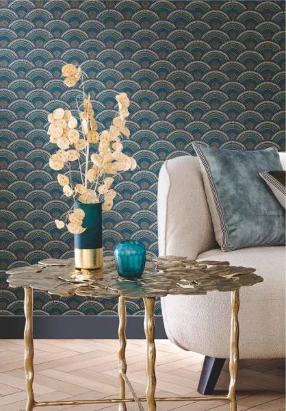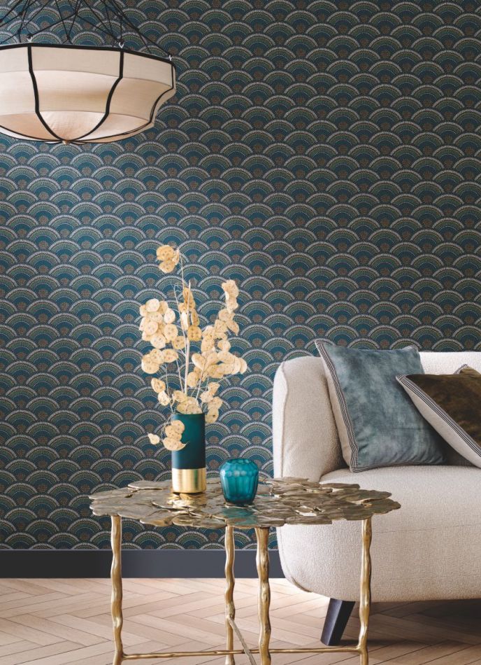 Produced using four films, Otto wallpaper palmette has beautiful depths, alternating lustre and matte. It recalls the work of Otto Wagner, founder of modern Austrian architecture and advocate of functionalism.