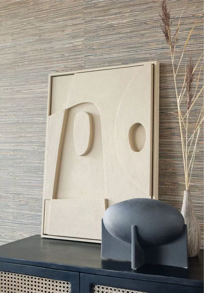 Like a fingerprint, no two rolls of this natural material are alike. Fibres may absorb colours differently and, thanks to their unique traits, vary in size. This wallcovering has no repeat, and always creates a panel effect. This expressive natural variance enhances the charm of this unique product, creating shade and depth.