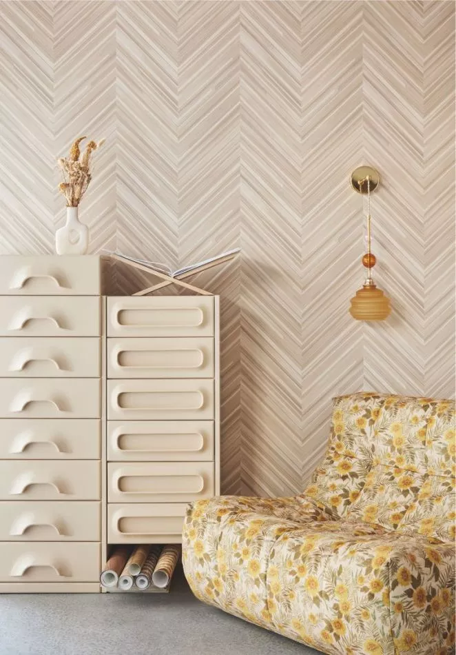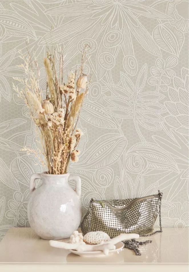 The color palette is equally refined, featuring rich mother-of-pearl, shimmering gold, and copper, alongside timeless greige and sage green. Deep anthracite, burgundy, and aubergine harmonize with misty mauve and elegant celadon. Immerse yourself in luxury and savor the finer things in life with Gilded!