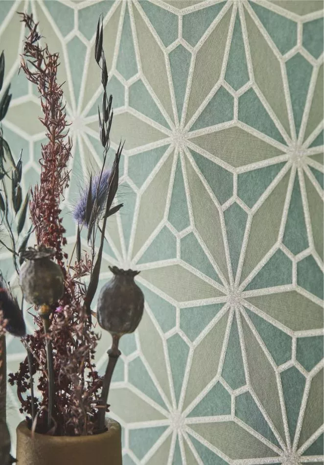 Gilded truly makes your interior shine. Enhance your spaces with reflective shadow effects and the silky sheen of a lush palm motif. Alternatively, adorn your walls with a floral pattern that pays tribute to the artistry of fine handcrafted lace. Shimmering glass beads create an almost mystical effect in this geometrically inspired design with an oriental flair—a homage to traditional stained glass artistry. A serpentine floral pattern, layered with varying degrees of transparency, flirts with light in tonal metallic shades. Delicately drawn, shimmering lines in a spectrum of hues bring to life a pattern of stylized, abstract leaves. For a bold accent, consider a herringbone motif crafted from inlaid wood, elegantly trimmed with a subtle, shimmering border. The digitally printed wallpaper features glossy metallic lines alternating with veneer blocks and diamonds. Equally captivating is the opulent design of translucent crystal—a stunning focal point for any wall.