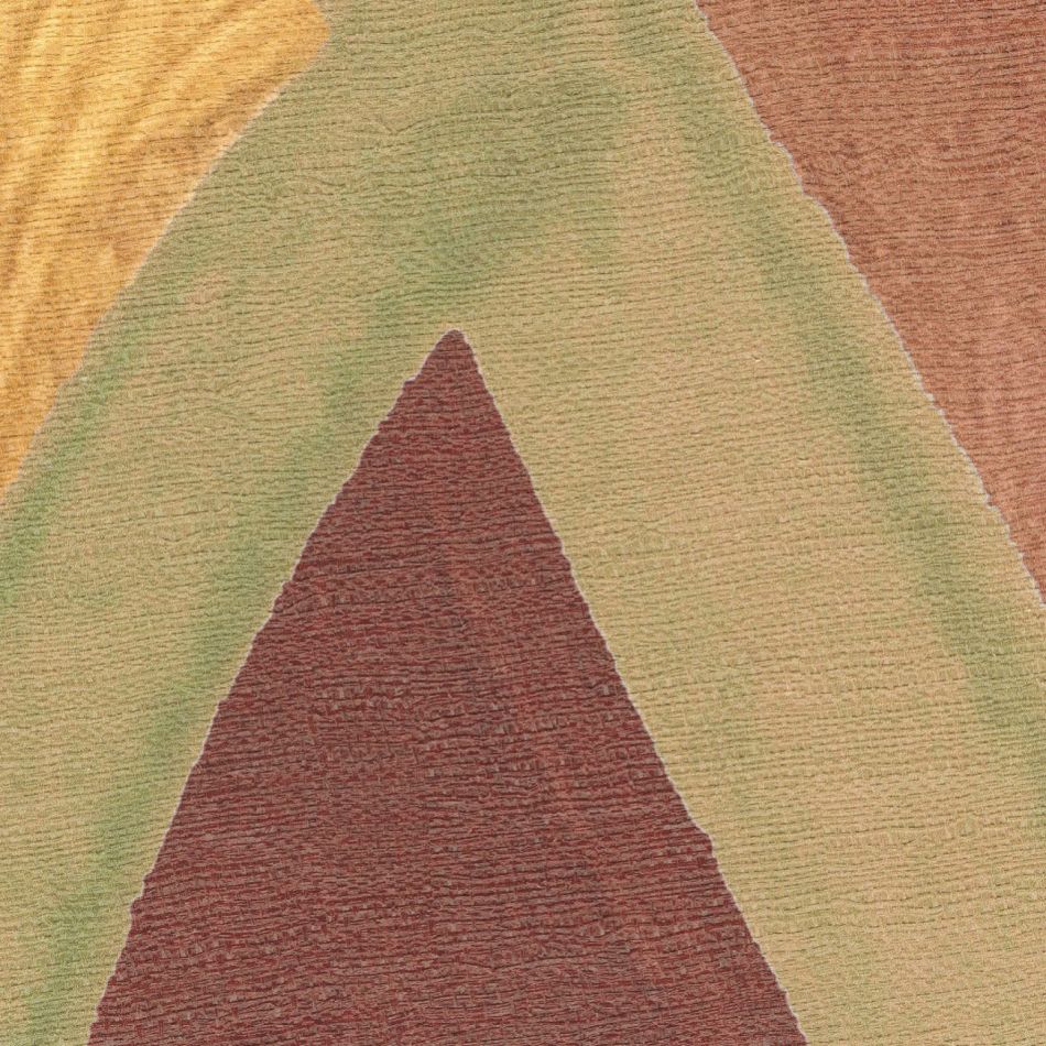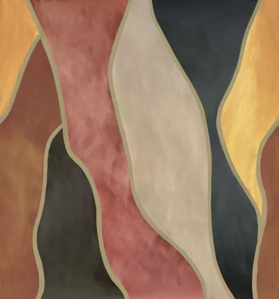 The creations feature curved lines in the form of graphic figures, infinitely intertwined patterns, or geometrically structured compositions. The repetitive wave motifs evoke the artist’s famous interior designs, highlighting the patience in her work; the colors – as if a metallic thread were woven in – impress with their subtle nuances.