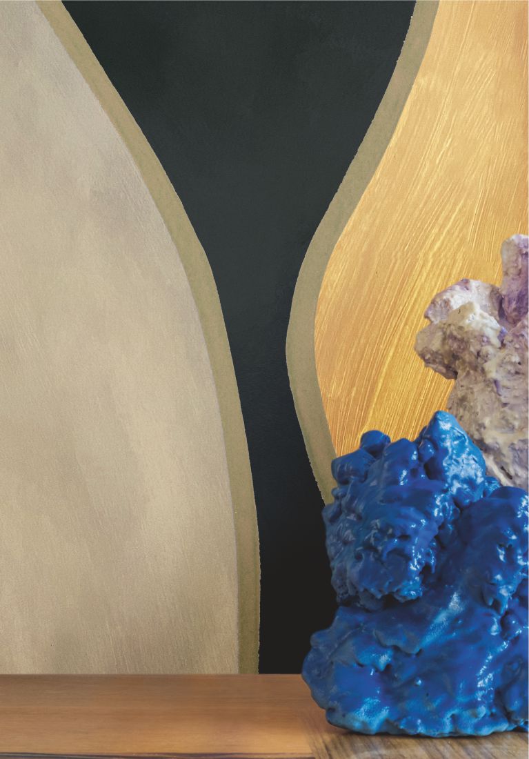 In the wall panoramas, the artist's painterly work takes on distinct forms, as if directly influenced by her creations: handcrafted paintings brought to life through vibrant colors.