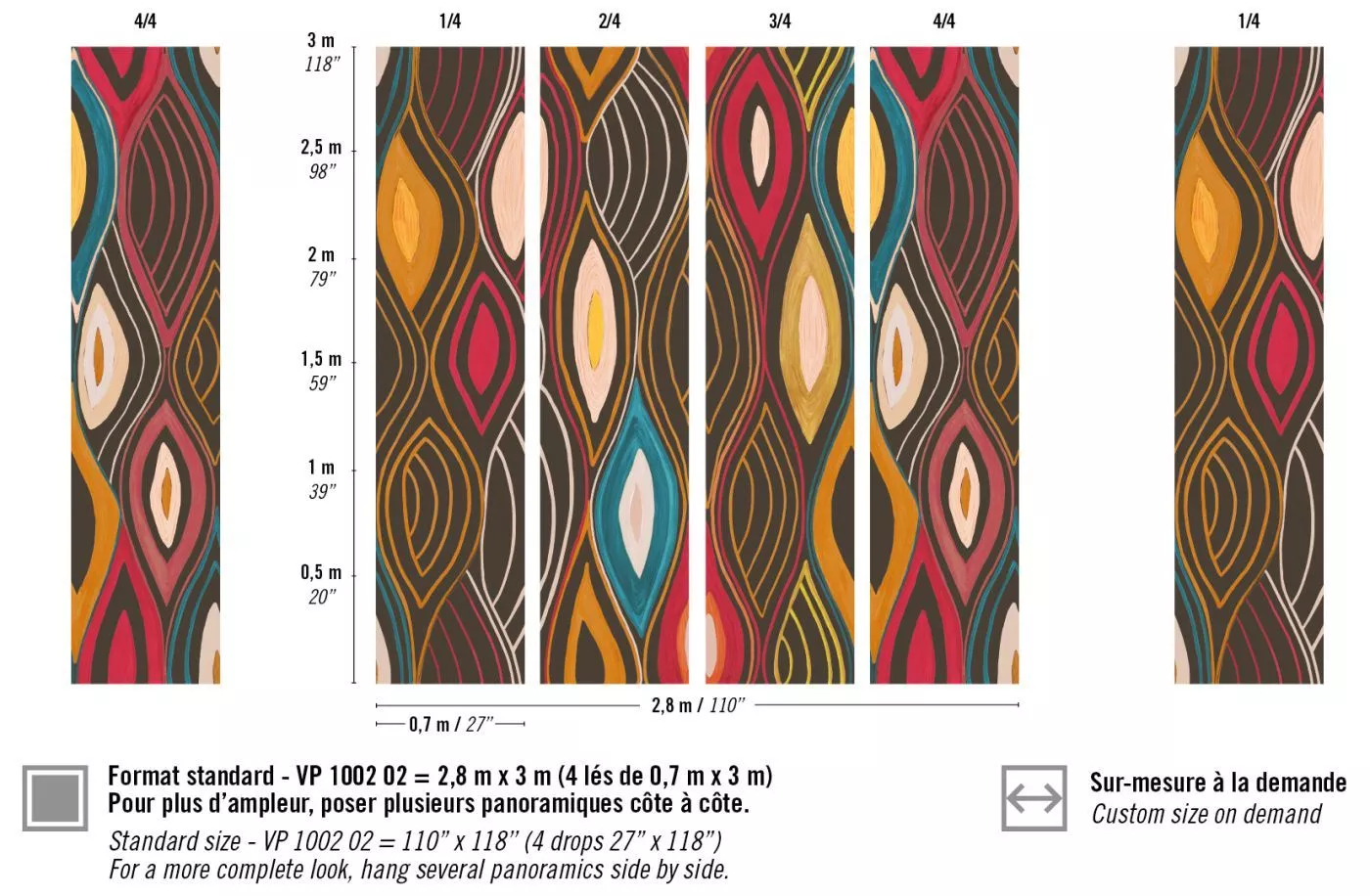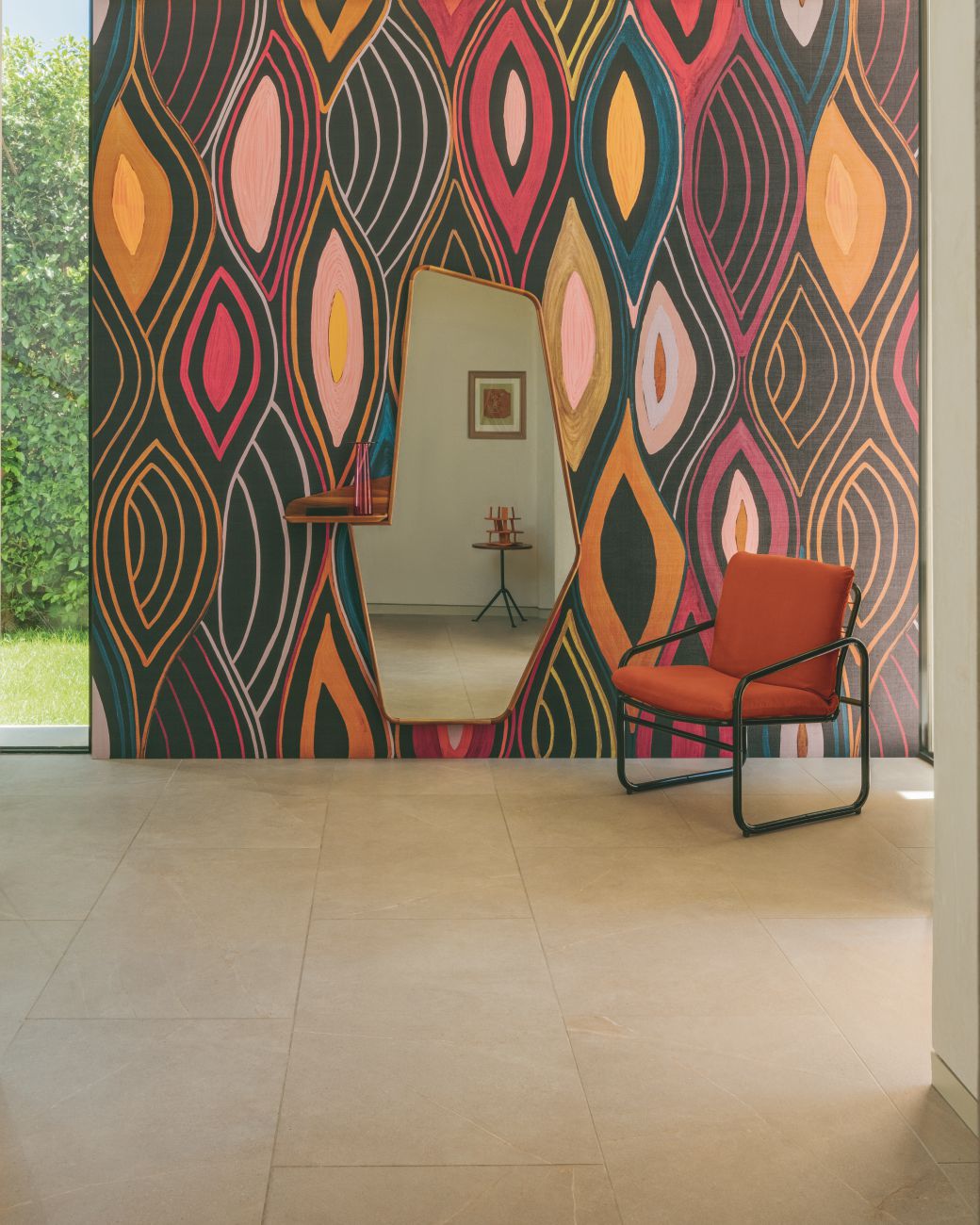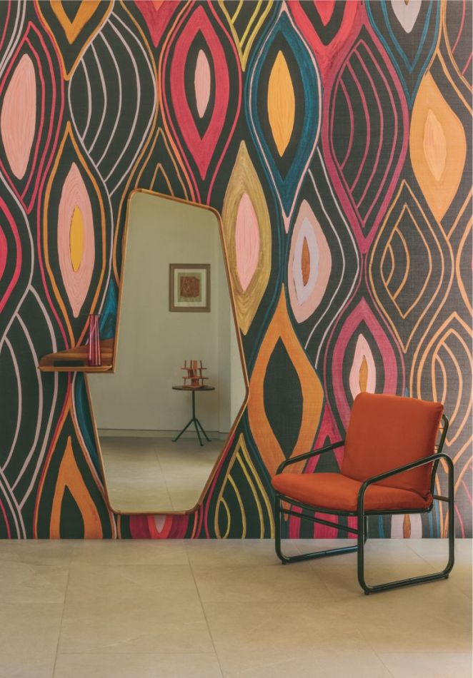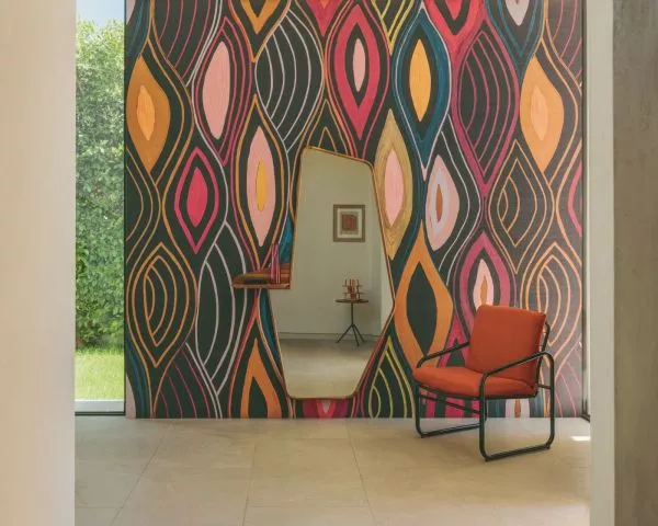 In the wall panoramas, the artist's painterly work takes on distinct forms, as if directly influenced by her creations: handcrafted paintings brought to life through vibrant colors.