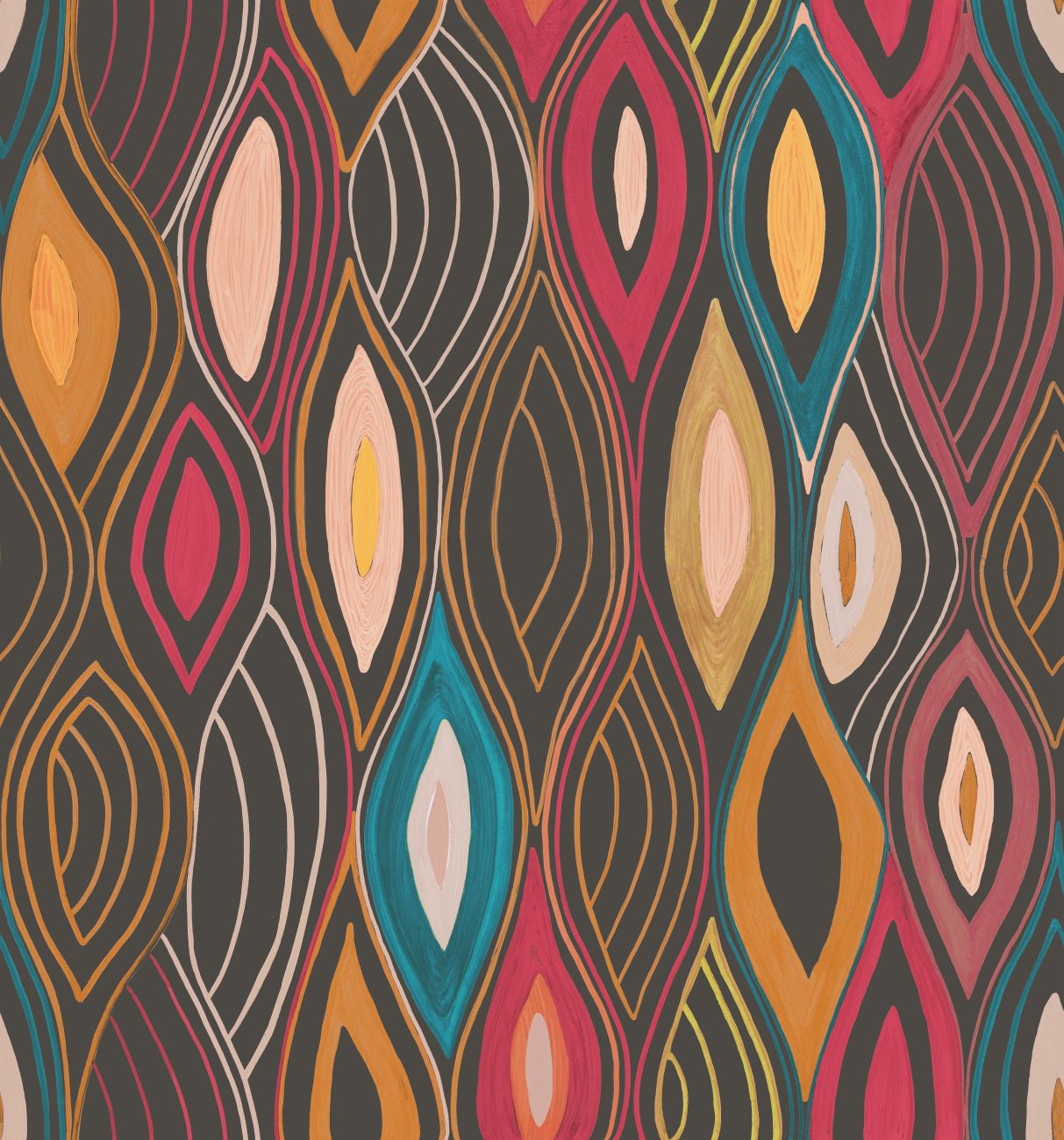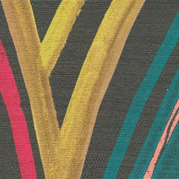 The creations feature curved lines in the form of graphic figures, infinitely intertwined patterns, or geometrically structured compositions. The repetitive wave motifs evoke the artist’s famous interior designs, highlighting the patience in her work; the colors – as if a metallic thread were woven in – impress with their subtle nuances.