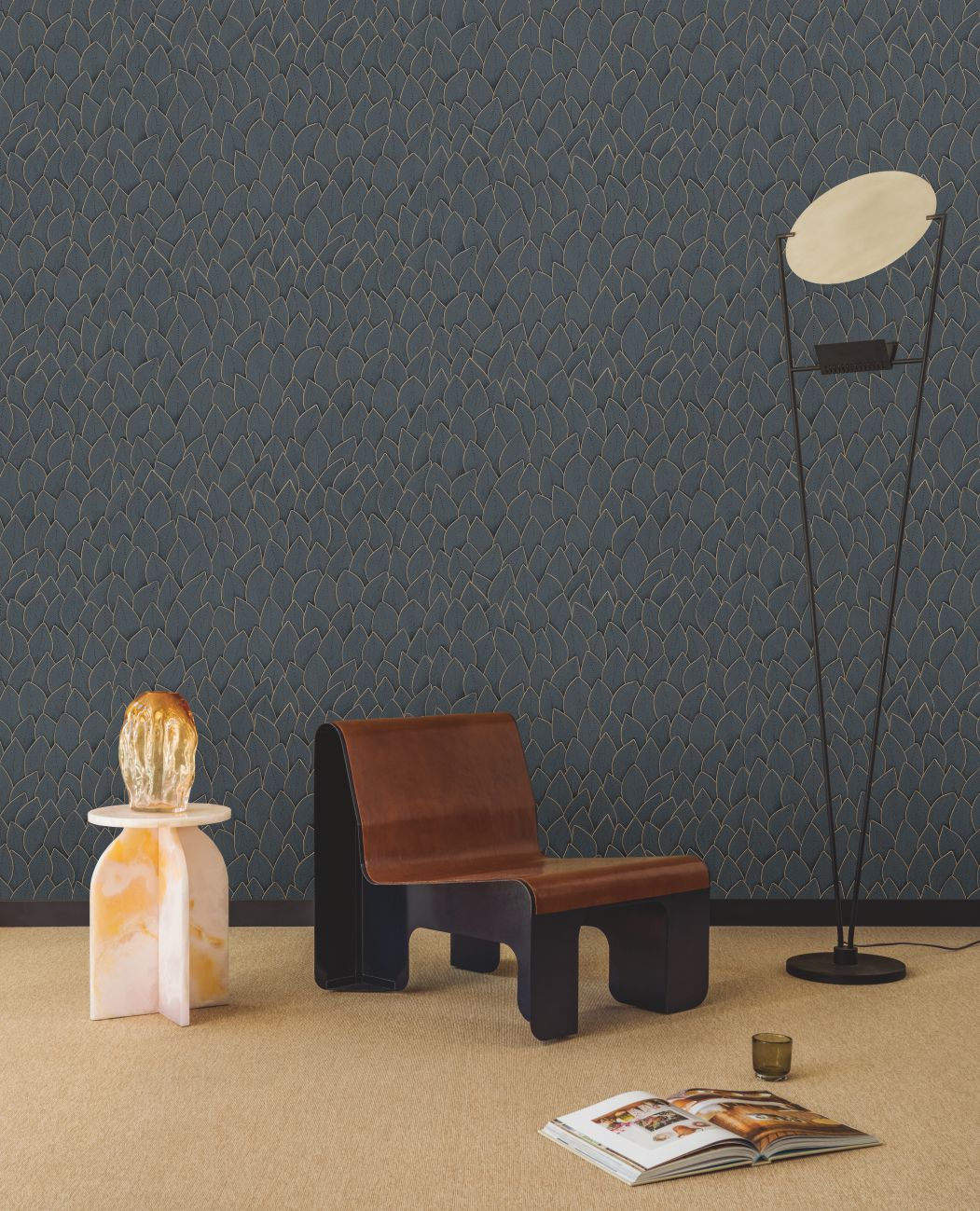 The ideas of Véronique de Soultrait come to life here, as knots of rope and cord are untied, connecting these materials with the modern world. The artist elevates the art of braiding to its highest level, introducing rope and cord into the painterly realm of Art Deco. These creations, both free-flowing and meticulously detailed, feature curved lines in the form of graphic figures, endlessly intertwined patterns, or geometrically structured compositions. The repeating wave motifs reveal the artist’s signature interior designs, highlighting the patience in her work. The colors, with hints of metallic thread, captivate with their subtle nuances.