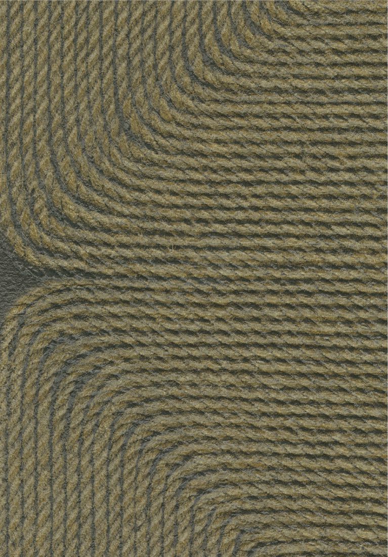 The ideas of Véronique de Soultrait come to life here, as knots of rope and cord are untied, connecting these materials with the modern world. The artist elevates the art of braiding to its highest level, introducing rope and cord into the painterly realm of Art Deco. These creations, both free-flowing and meticulously detailed, feature curved lines in the form of graphic figures, endlessly intertwined patterns, or geometrically structured compositions. The repeating wave motifs reveal the artist’s signature interior designs, highlighting the patience in her work. The colors, with hints of metallic thread, captivate with their subtle nuances.