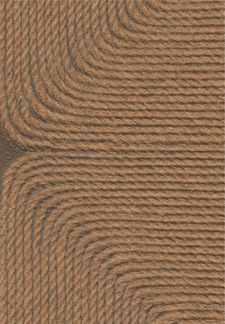 The ideas of Véronique de Soultrait come to life here, as knots of rope and cord are untied, connecting these materials with the modern world. The artist elevates the art of braiding to its highest level, introducing rope and cord into the painterly realm of Art Deco. These creations, both free-flowing and meticulously detailed, feature curved lines in the form of graphic figures, endlessly intertwined patterns, or geometrically structured compositions. The repeating wave motifs reveal the artist’s signature interior designs, highlighting the patience in her work. The colors, with hints of metallic thread, captivate with their subtle nuances.