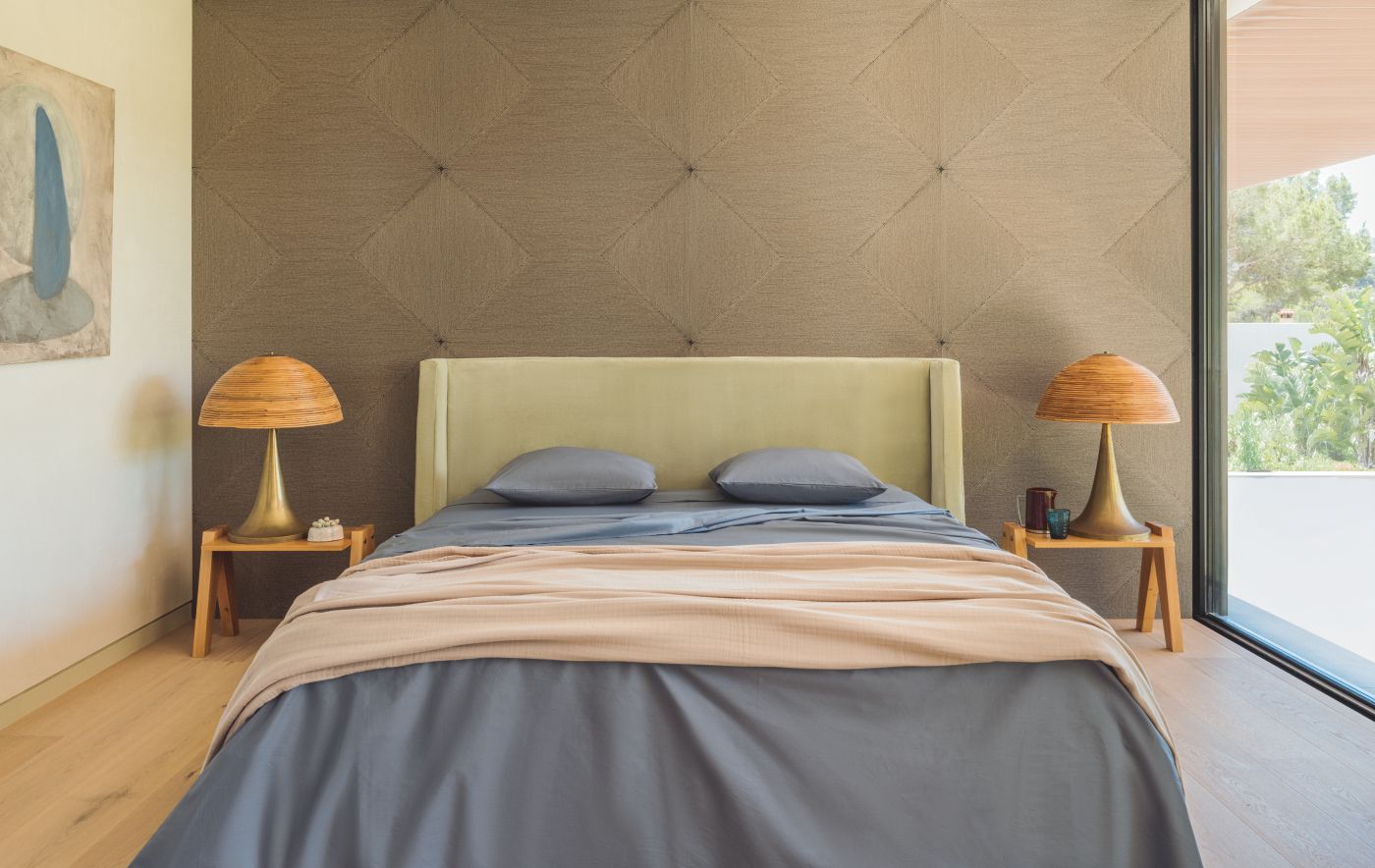 The ideas of Véronique de Soultrait come to life here, as knots of rope and cord are untied, connecting these materials with the modern world. The artist elevates the art of braiding to its highest level, introducing rope and cord into the painterly realm of Art Deco. These creations, both free-flowing and meticulously detailed, feature curved lines in the form of graphic figures, endlessly intertwined patterns, or geometrically structured compositions. The repeating wave motifs reveal the artist’s signature interior designs, highlighting the patience in her work. The colors, with hints of metallic thread, captivate with their subtle nuances.