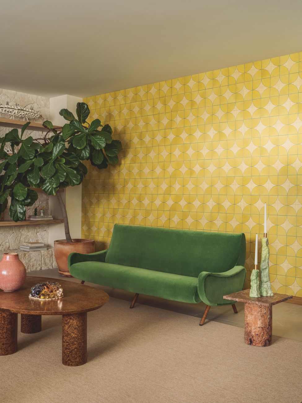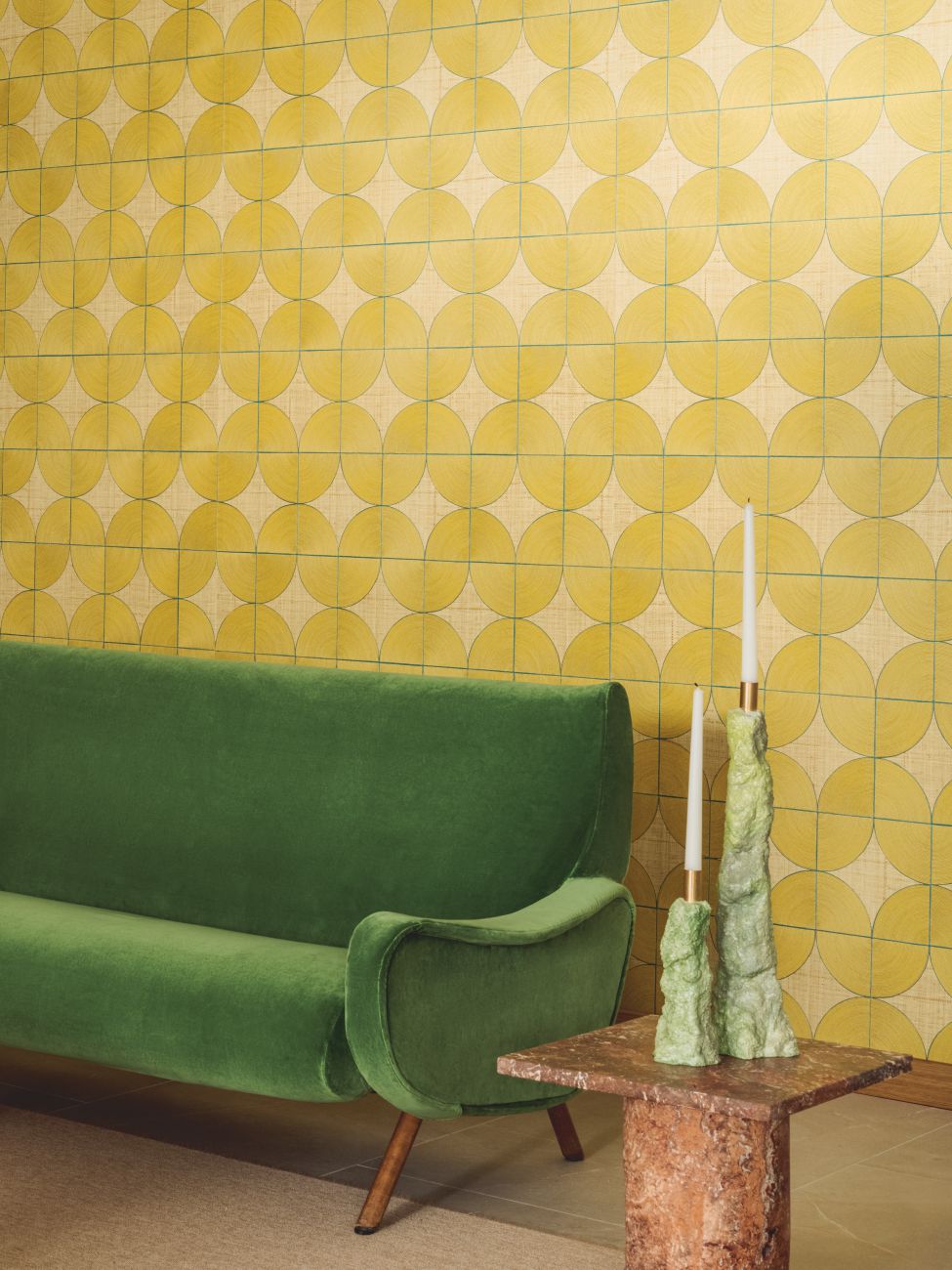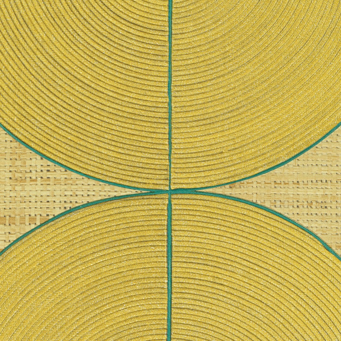 The ideas of Véronique de Soultrait come to life here, as knots of rope and cord are untied, connecting these materials with the modern world. The artist elevates the art of braiding to its highest level, introducing rope and cord into the painterly realm of Art Deco. These creations, both free-flowing and meticulously detailed, feature curved lines in the form of graphic figures, endlessly intertwined patterns, or geometrically structured compositions. The repeating wave motifs reveal the artist’s signature interior designs, highlighting the patience in her work. The colors, with hints of metallic thread, captivate with their subtle nuances.