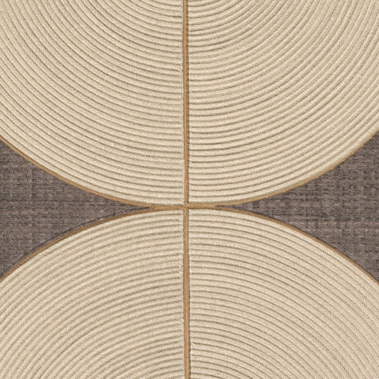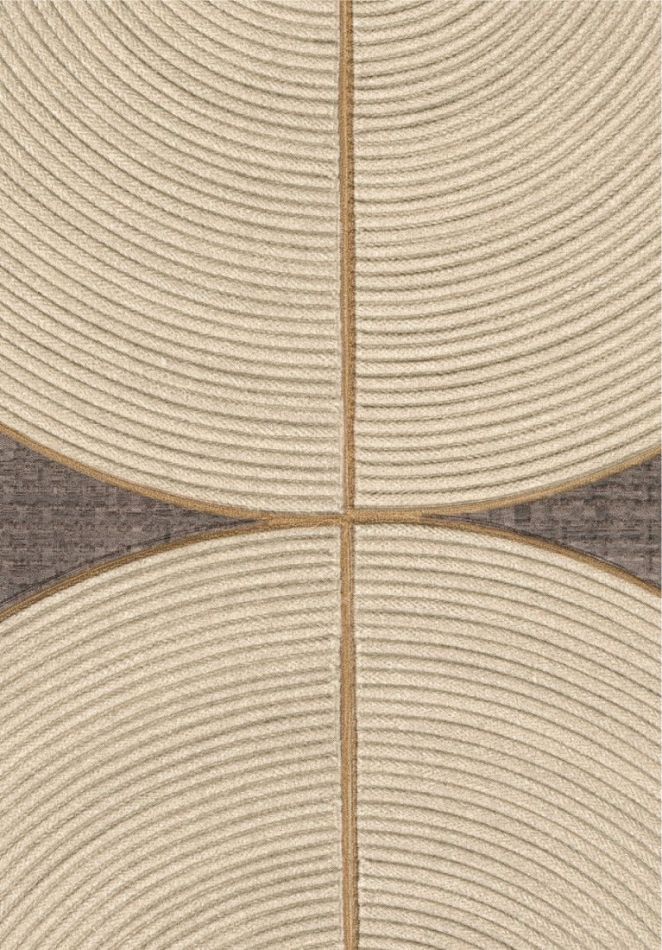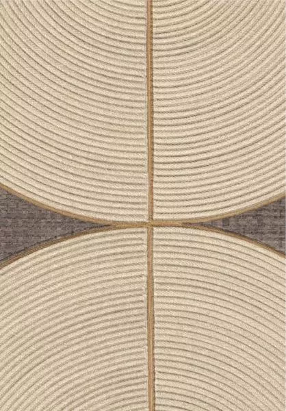 The ideas of Véronique de Soultrait come to life here, as knots of rope and cord are untied, connecting these materials with the modern world. The artist elevates the art of braiding to its highest level, introducing rope and cord into the painterly realm of Art Deco. These creations, both free-flowing and meticulously detailed, feature curved lines in the form of graphic figures, endlessly intertwined patterns, or geometrically structured compositions. The repeating wave motifs reveal the artist’s signature interior designs, highlighting the patience in her work. The colors, with hints of metallic thread, captivate with their subtle nuances.