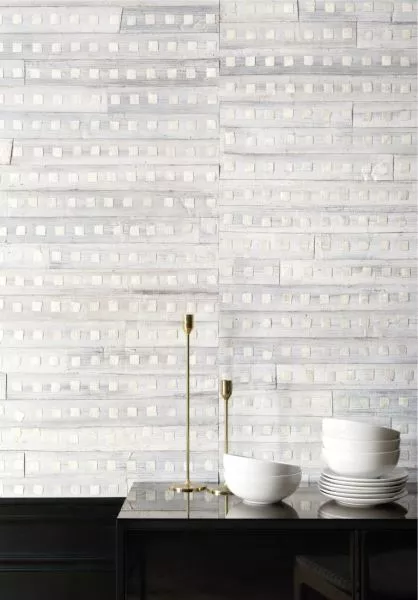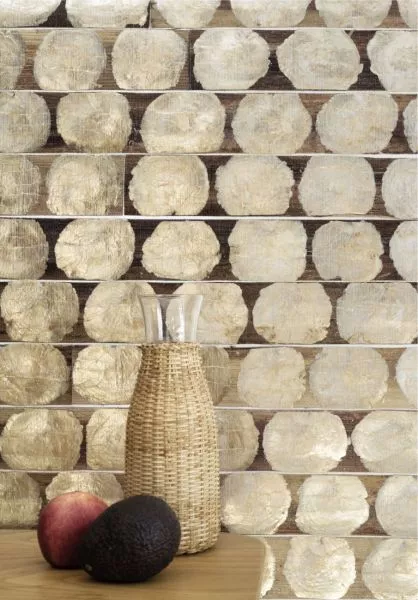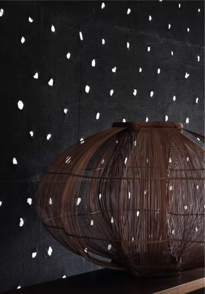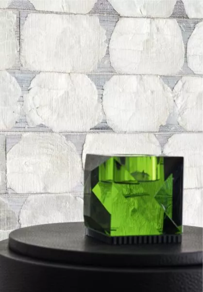 On the far side of the river bank, a celebration. Materials that craftsmen have handled for ages gather in totemic unions. Mother of pearl meets abaca, raffia chooses metallic threads, leaves join pigments from the painter’s workshop. Now they are entangled, interlaced, pierced, smeared. The old moon shines over new original drawings. They are made of subtle weaves, iridescent perforations, geometrical melodies…