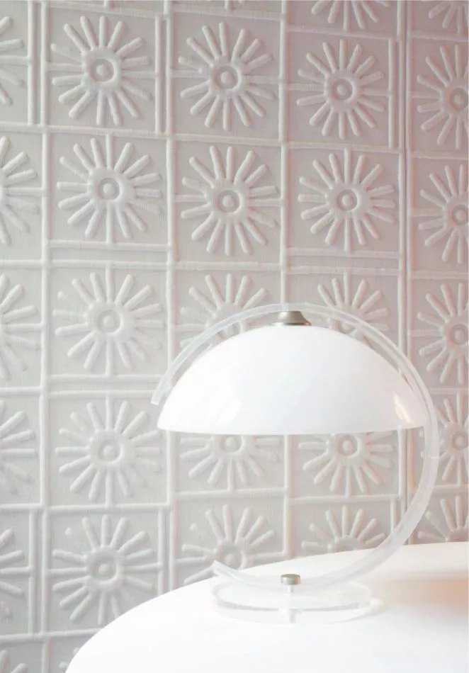 Three-dimensionality has two new companions: linen and chenille. One is very dull, the other warm. In this fine team, the lines curve and conquer voluminous worlds. Architectural arches, curved moldings, bulging stars ...