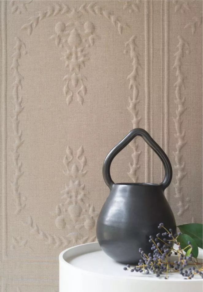 Wall coverings with new textures in 3-D effect: linen and chenille. Products for the contract business, Made in France, linen with the "Masters of linen" certificate, the wall coverings also contribute to the comfortable room acoustics.